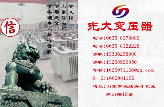 变压器厂家-光大变压器制造有限公司隶属于光大电气集团,是集团的核心企业之一。年生产变压器能力1000万KVA;主导产品有220kV级以下的S11/S13/S20/S22油浸式变压器、SCB10/SCB11/SCB12/SCB13/SCB14/SCB15/SCB18干式变压器、高过载变压器、非晶合金变压器、光伏发电变压器、水利发电变压器、整流变压器、电炉变压器、矿用变压器、较强过载能力电力变压器、油田用变压器、高原用变压器、煤矿用变压器等30多个系列,1000多种规格,以及非标产品的设计和制造。  公司主要产品有220kV电压等级及以下单台容量240000kVA及以下油浸式电力变压器、35kV以下干式变压器、20(10)kV双电压等级油浸式、干式变压器、级科技项目SBH15非晶合金变压器、35kV及以下的箱变、高低压开关柜以及单相柱上式油浸变压器等各类全系列电力变压器。